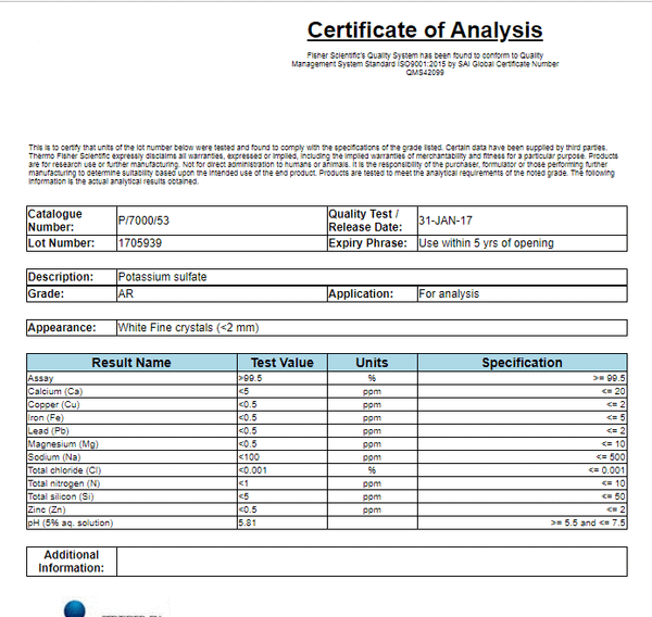 Trong hóa chất công nghiệp, các phụ gia, tạp vi lượng hoặc chất ổn định thường không được khai báo đầy đủ trên COA vì lý do bí mật thương mại hoặc vì chúng không nằm trong các chỉ tiêu thương mại phổ biến.